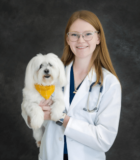 Dr. Emily Kuras is originally from Grand Rapids, MI. She attended Purdue University for undergrad with a degree in Genetics, and Auburn University for vet school. Dr. Kuras has been riding horses since she was little and currently rides and competes in 3 day eventing with her big red horse, Clifford! Dr. Kuras has 2 dogs: Maki (mixed breed rescue) & Delilah (Maltese mix), and 2 cats: Kronk & Fred. When she’s not caring for patients, she enjoys crocheting, hiking, reading and baking!